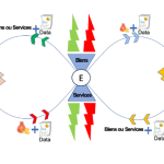 II. Une modélisation visuelle qui dit tout — ou presque : Le schéma que j’ai conçu repose sur une représentation en boucle continue. En son centre, l’Entité (E), qu’elle soit une entreprise, une institution publique, une famille, un pays. À sa gauche, ses Clients (C), à sa droite, ses Fournisseurs (F). Entre eux circulent des flux de biens, de services, de données, de valeurs, de signaux, de confiance. Certains flux sont visibles, d’autres invisibles. Certains sont matériels, d’autres symboliques. La boucle permet de représenter non seulement ce qui entre et sort, mais ce qui revient, ce qui se bloque, ce qui se déforme ou se renforce. Elle permet aussi d’intégrer ce que peu de schémas permettent : les tensions externes, les perturbations, les externalités. Dans mon modèle, « E » ne désigne plus uniquement l’Entreprise, mais toute Entité vivante. C’est ce glissement sémantique qui en révèle toute la portée.